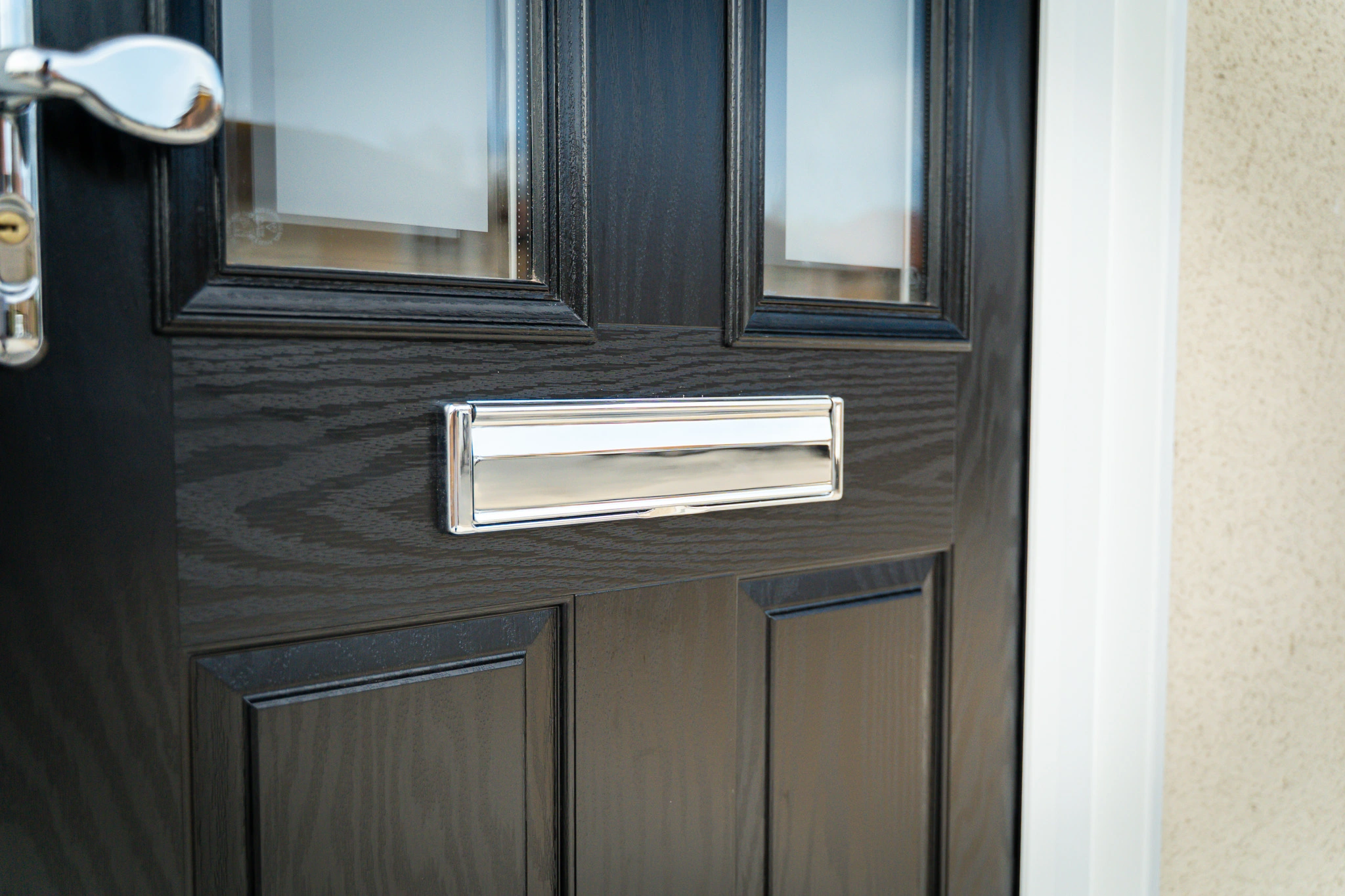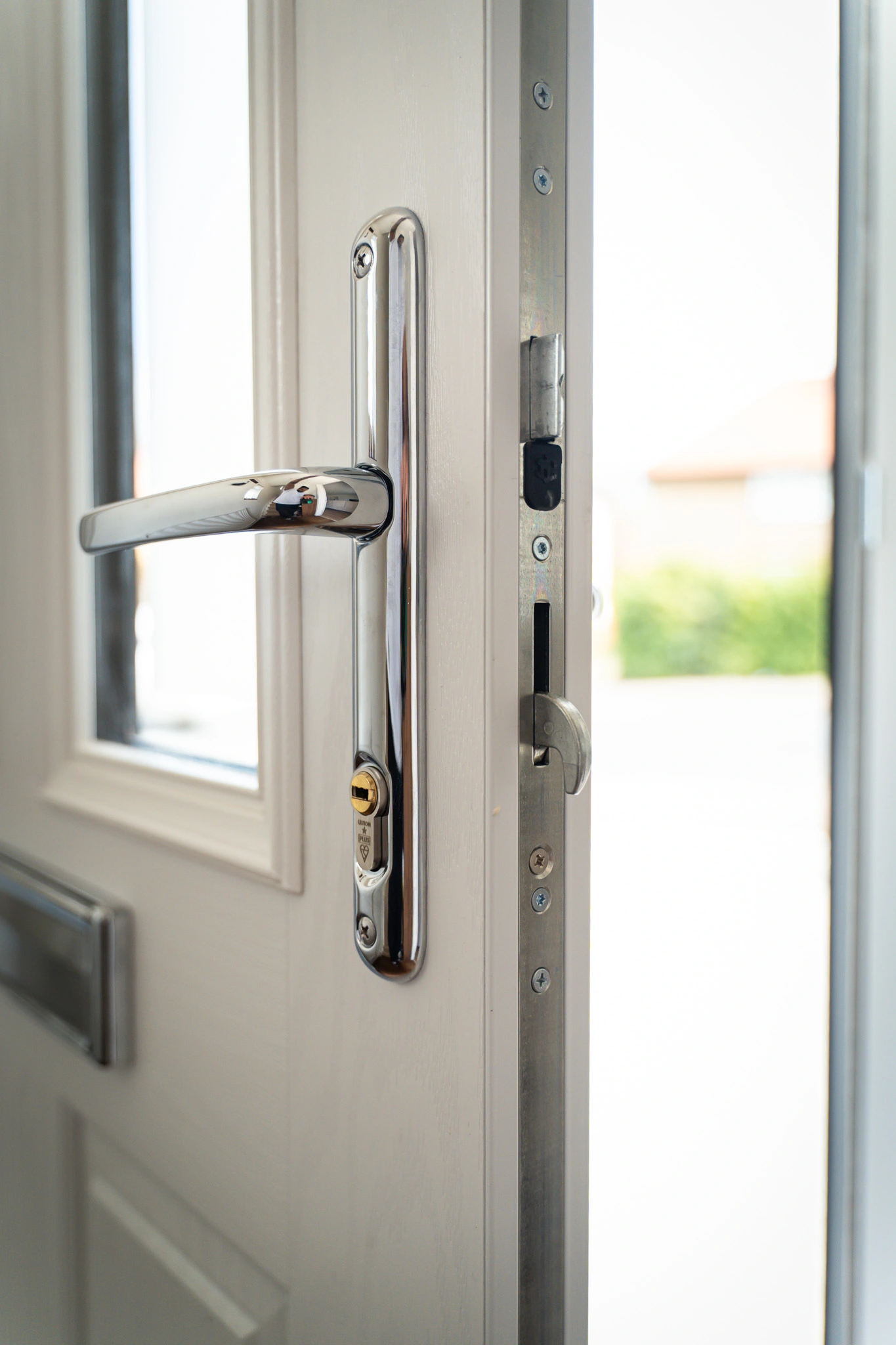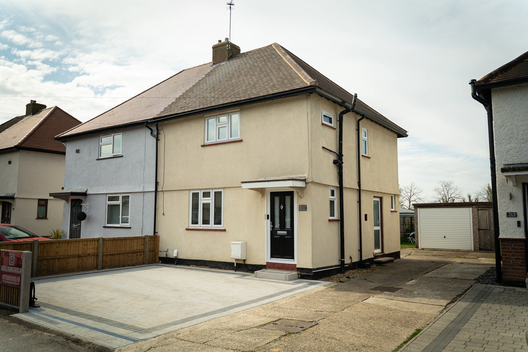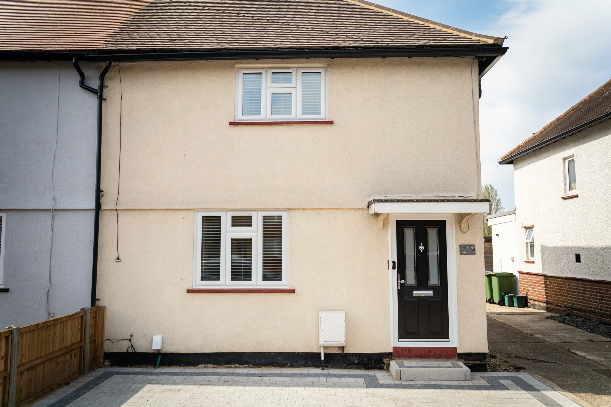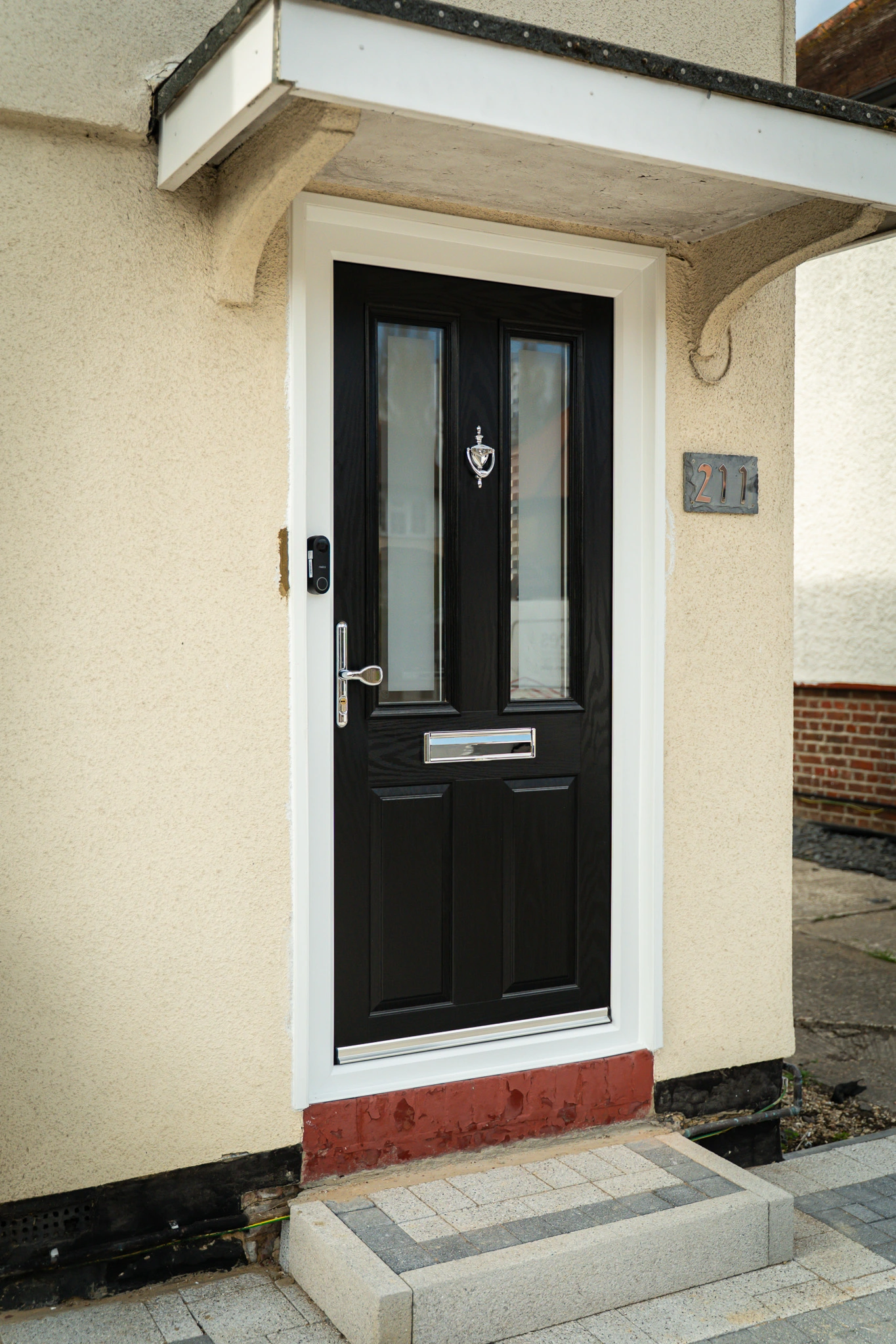 The work involved upgrading windows, doors and glazing throughout the home, alongside installations completed as part of a new extension. Existing uPVC windows and doors were replaced with new uPVC windows featuring dummy vents and a black composite front door. To improve natural light and access, we also installed a roof lantern, an aluminium sliding door opening onto the garden, and replaced a half-panel side door with a new fully glazed side door.